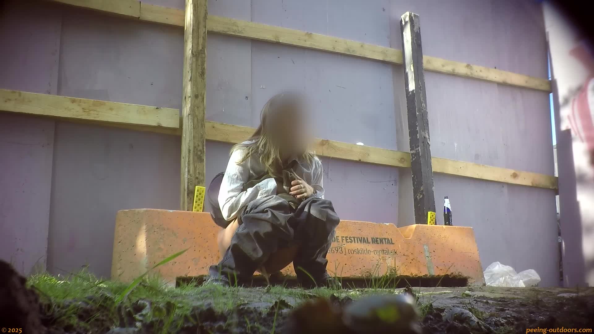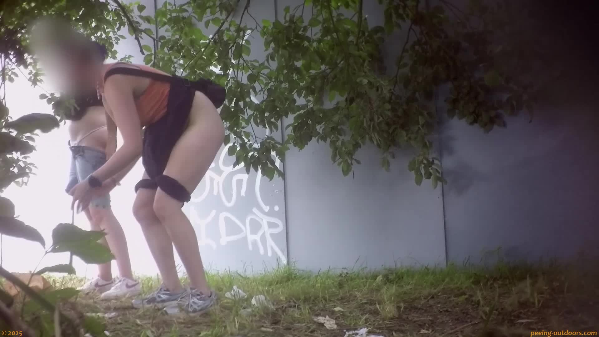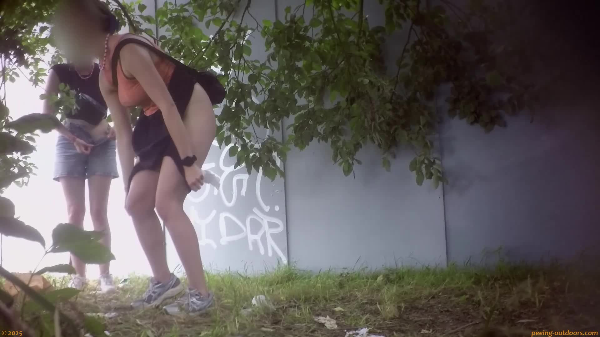 • Girl is caught from behind, pissing a torrent and forming a huge puddle in broad daylight.