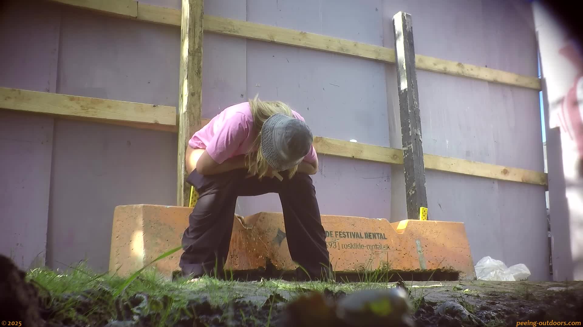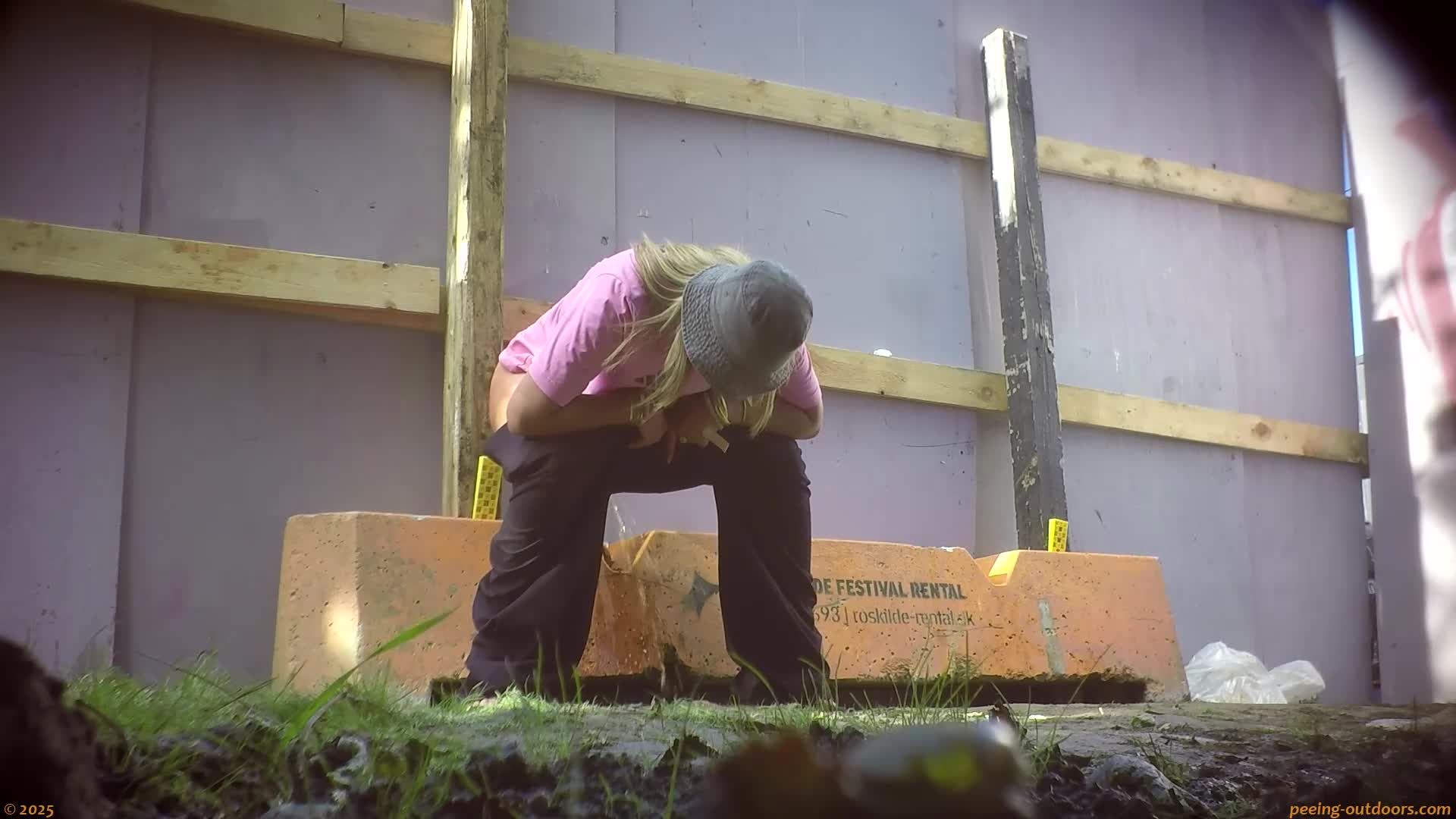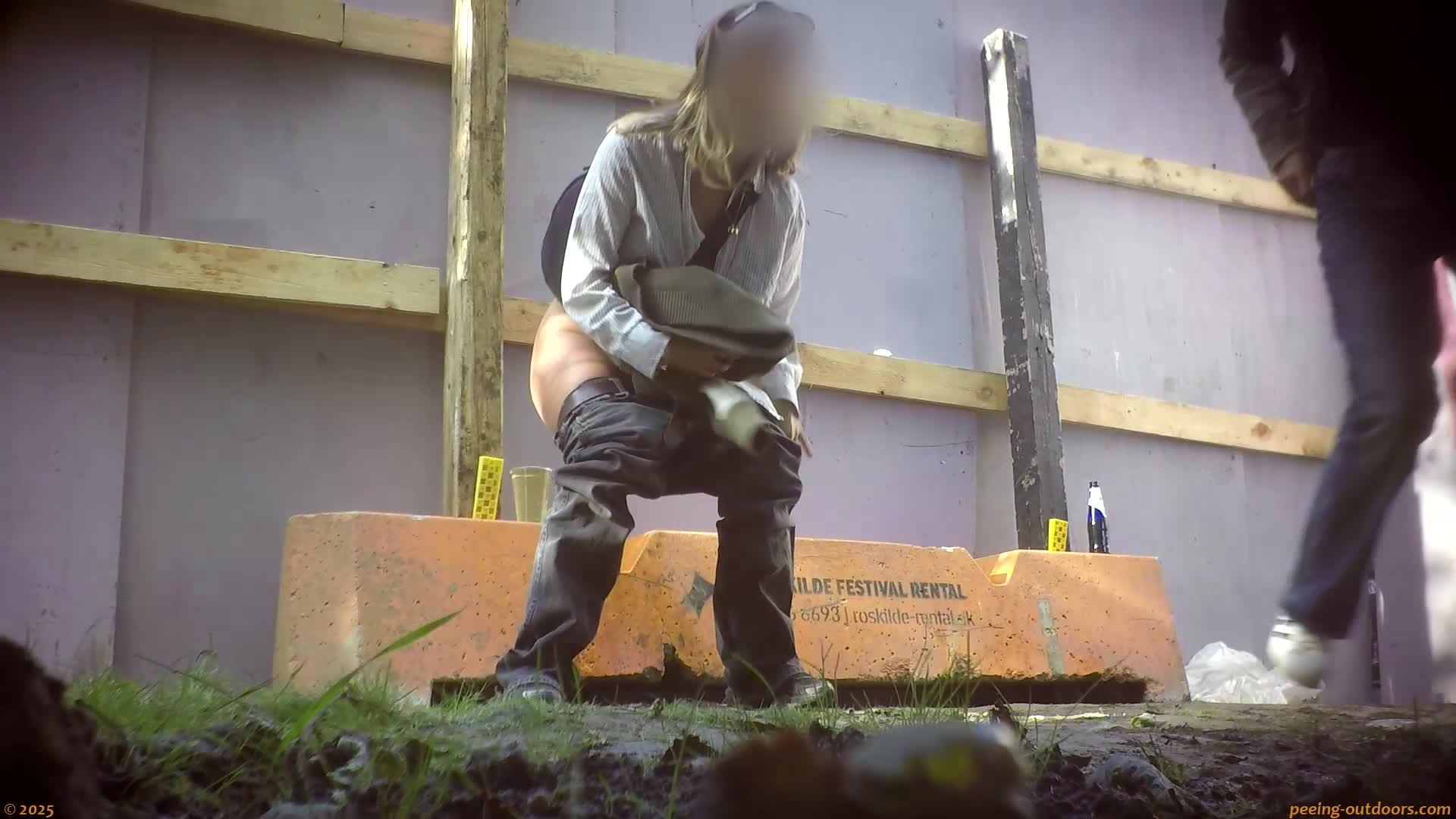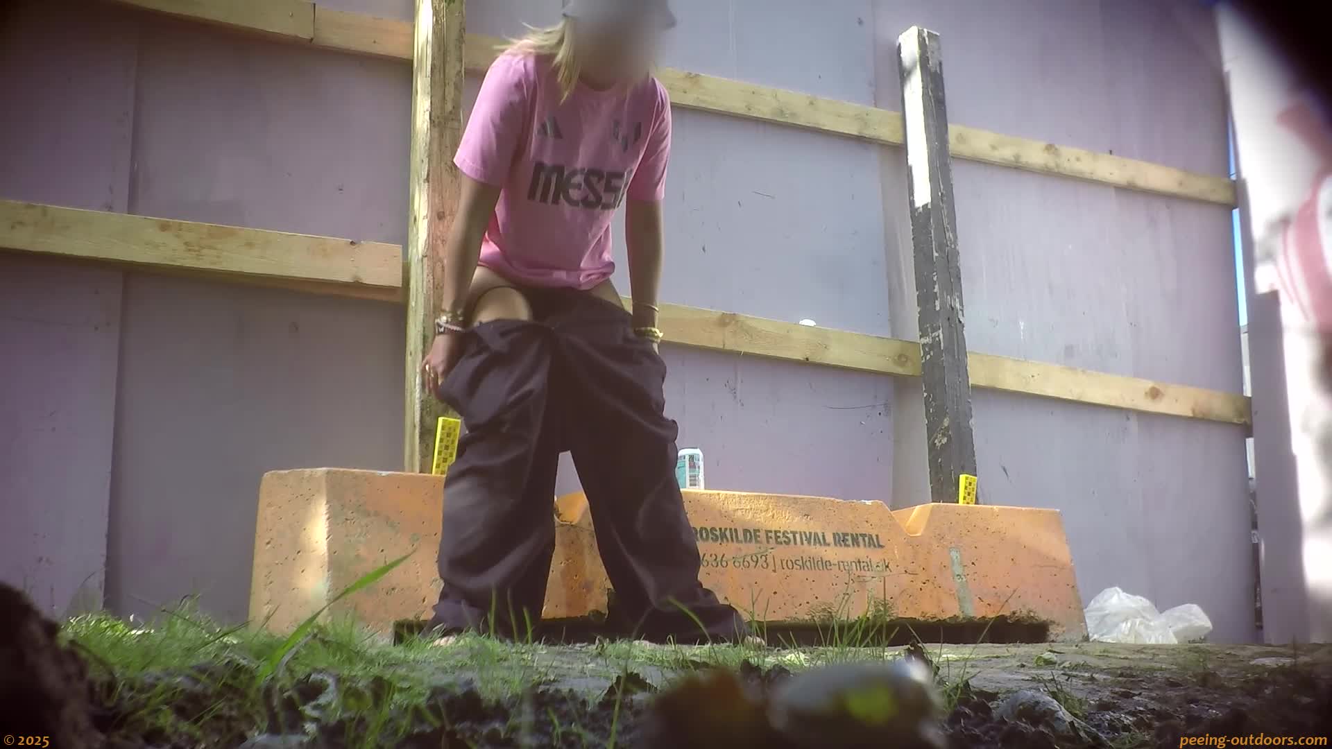 • Girl is caught from behind, pissing a torrent and forming a huge puddle in broad daylight.