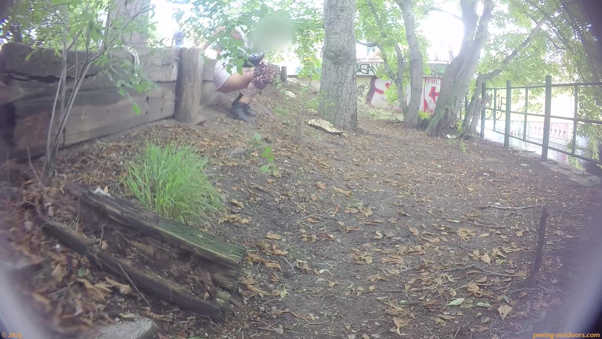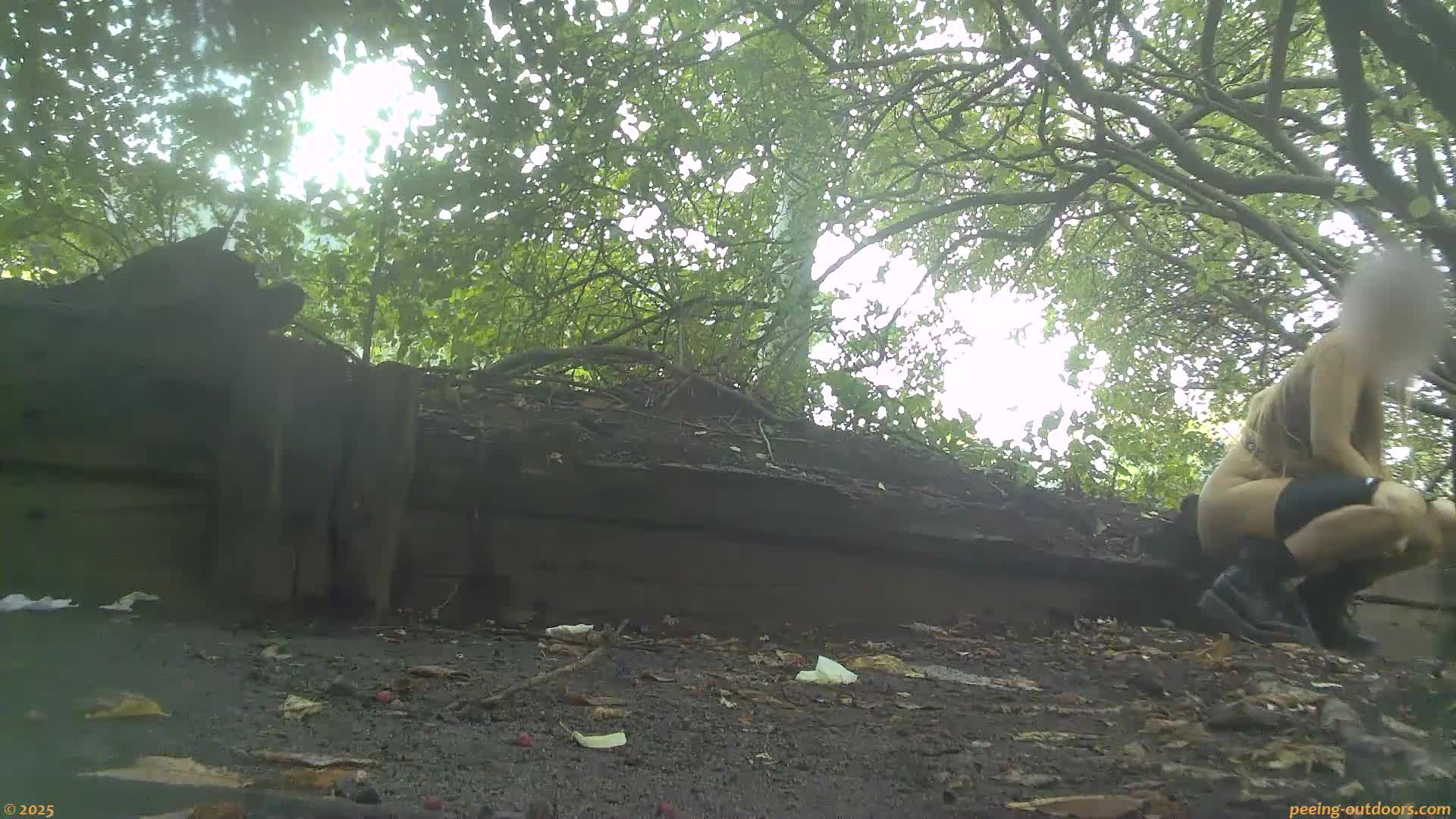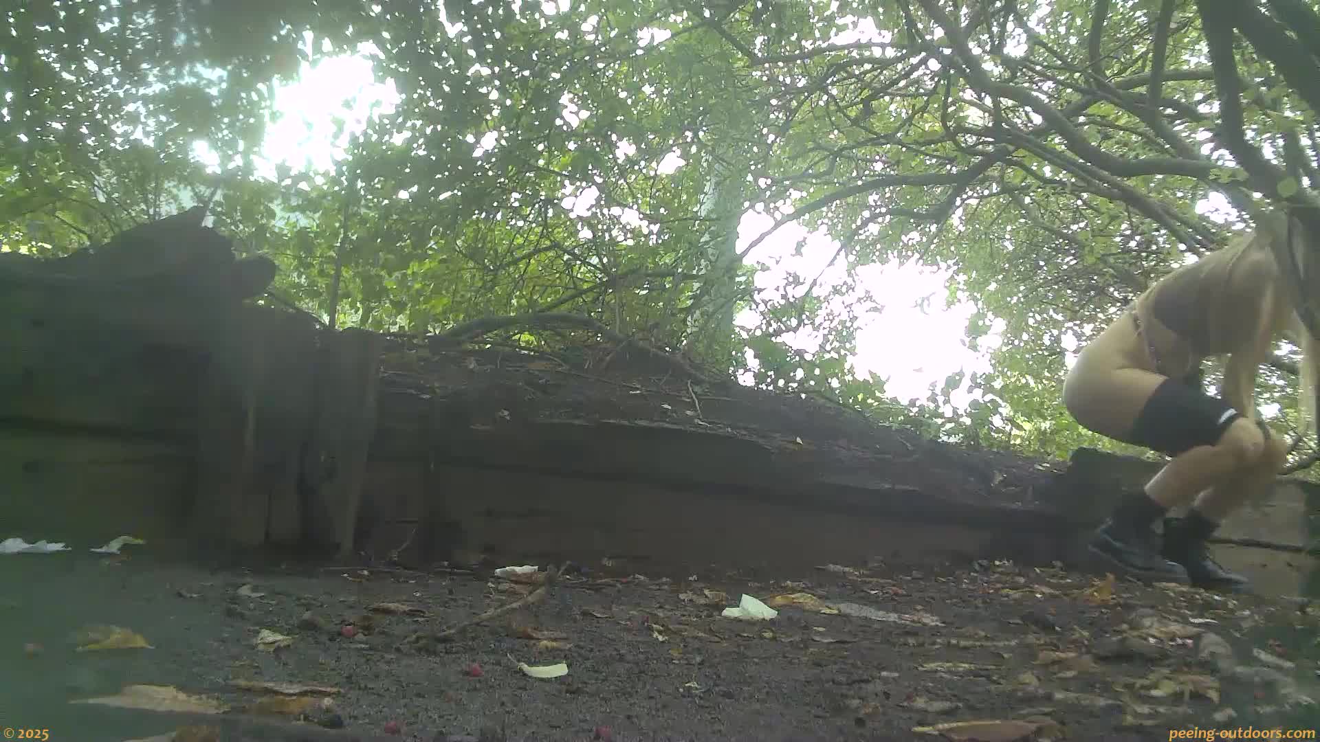 - Sweet blonde squats right in front of our camera for a quick pee break.