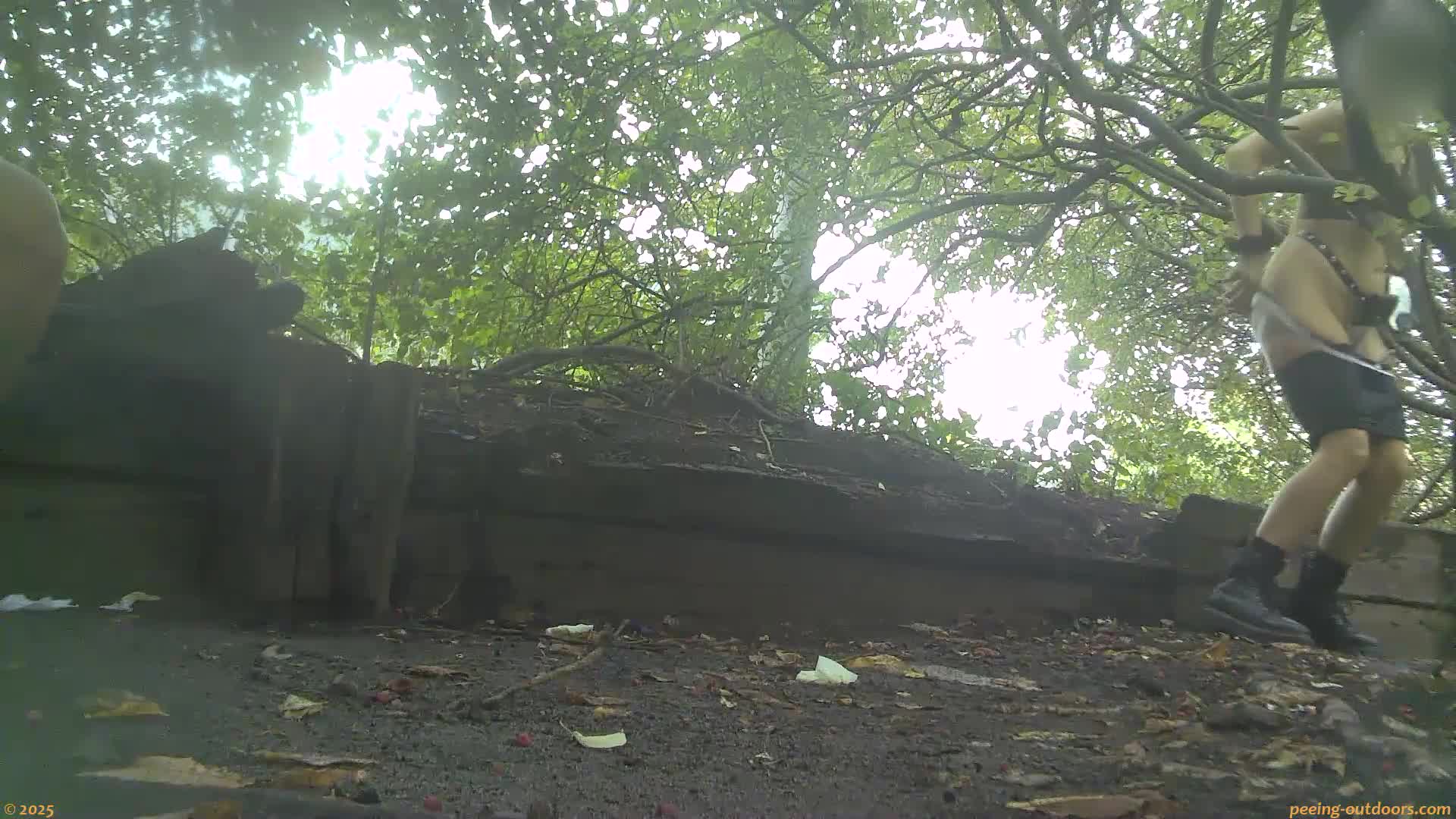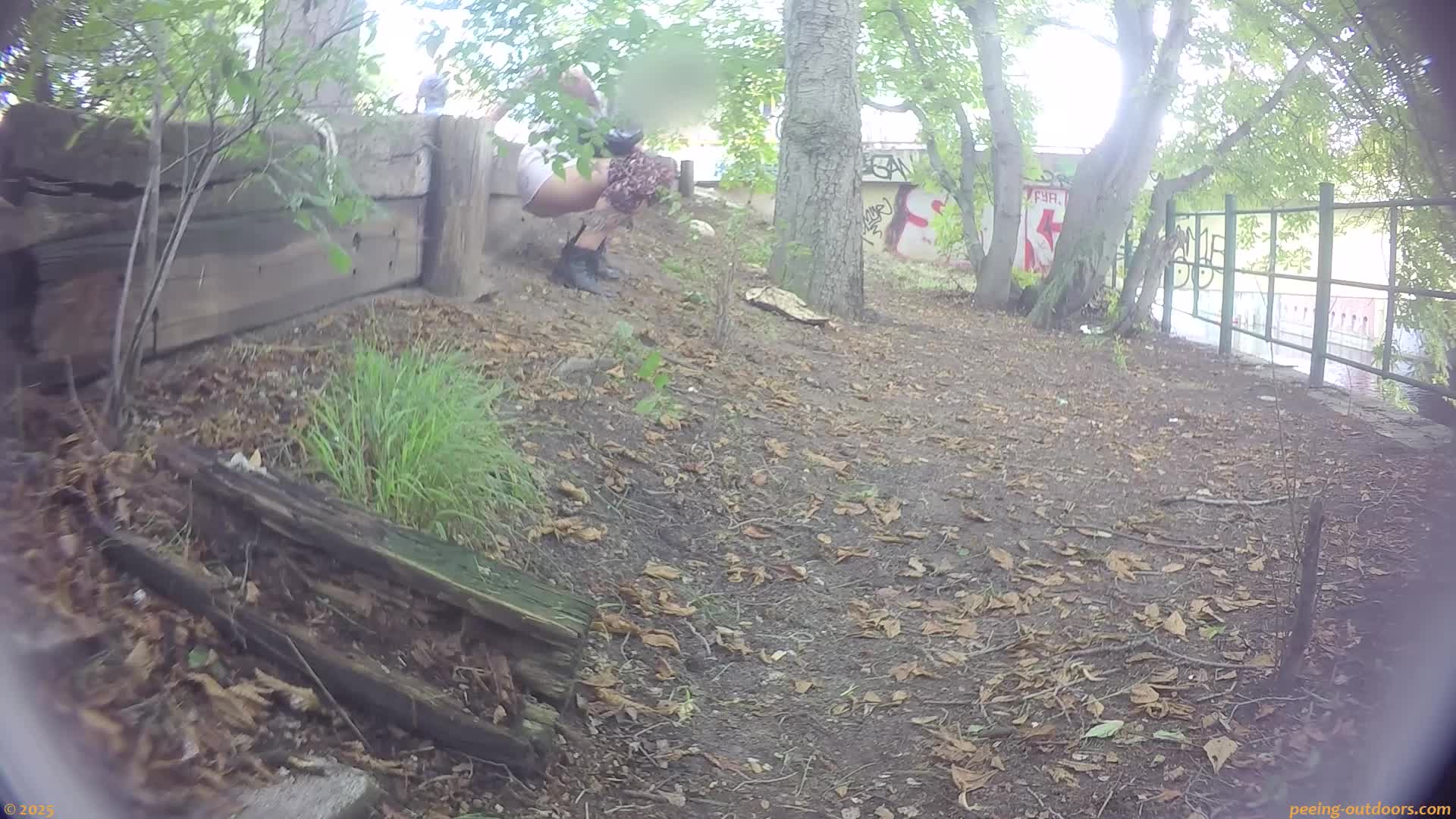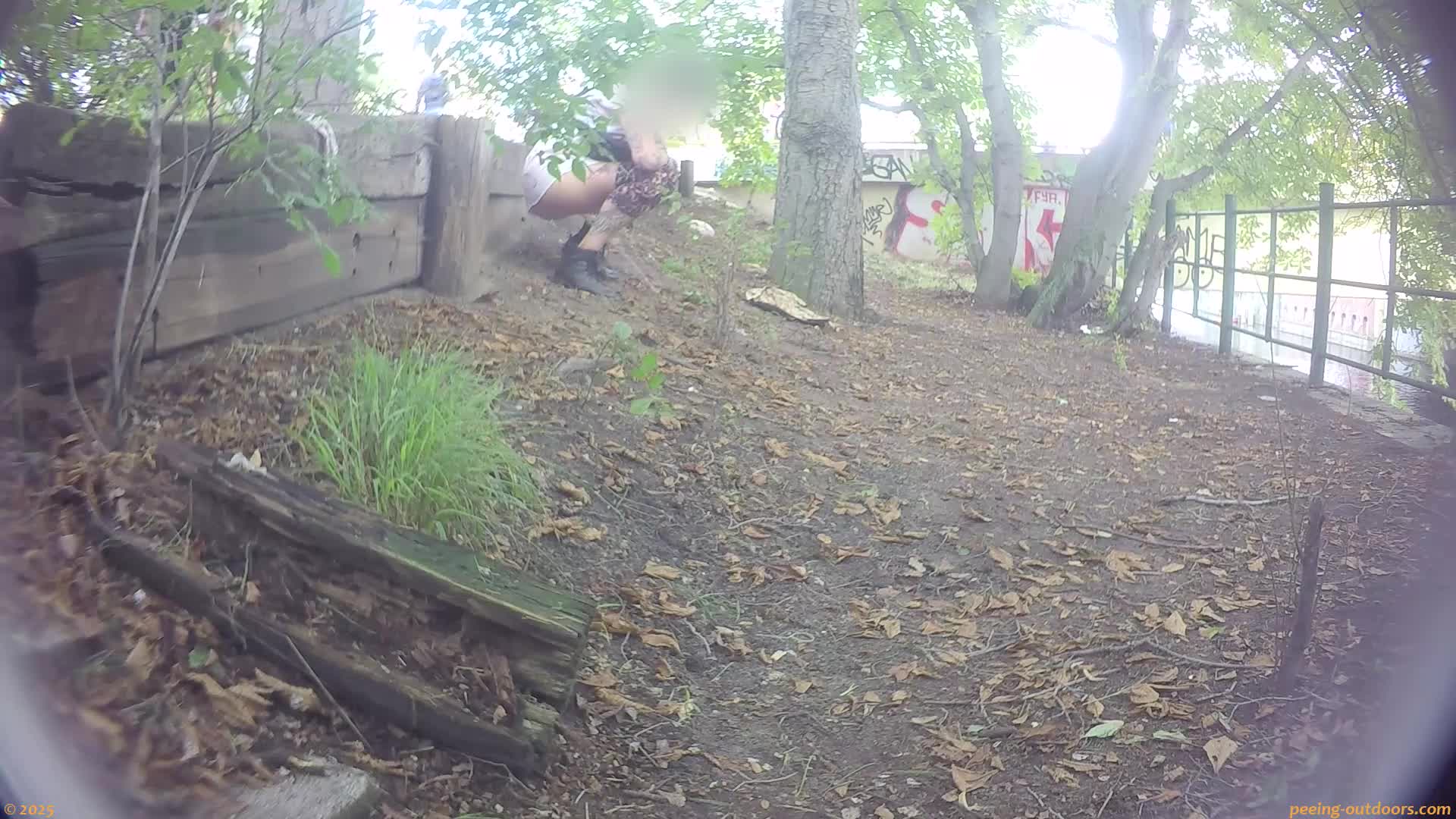 - Sweet blonde squats right in front of our camera for a quick pee break.