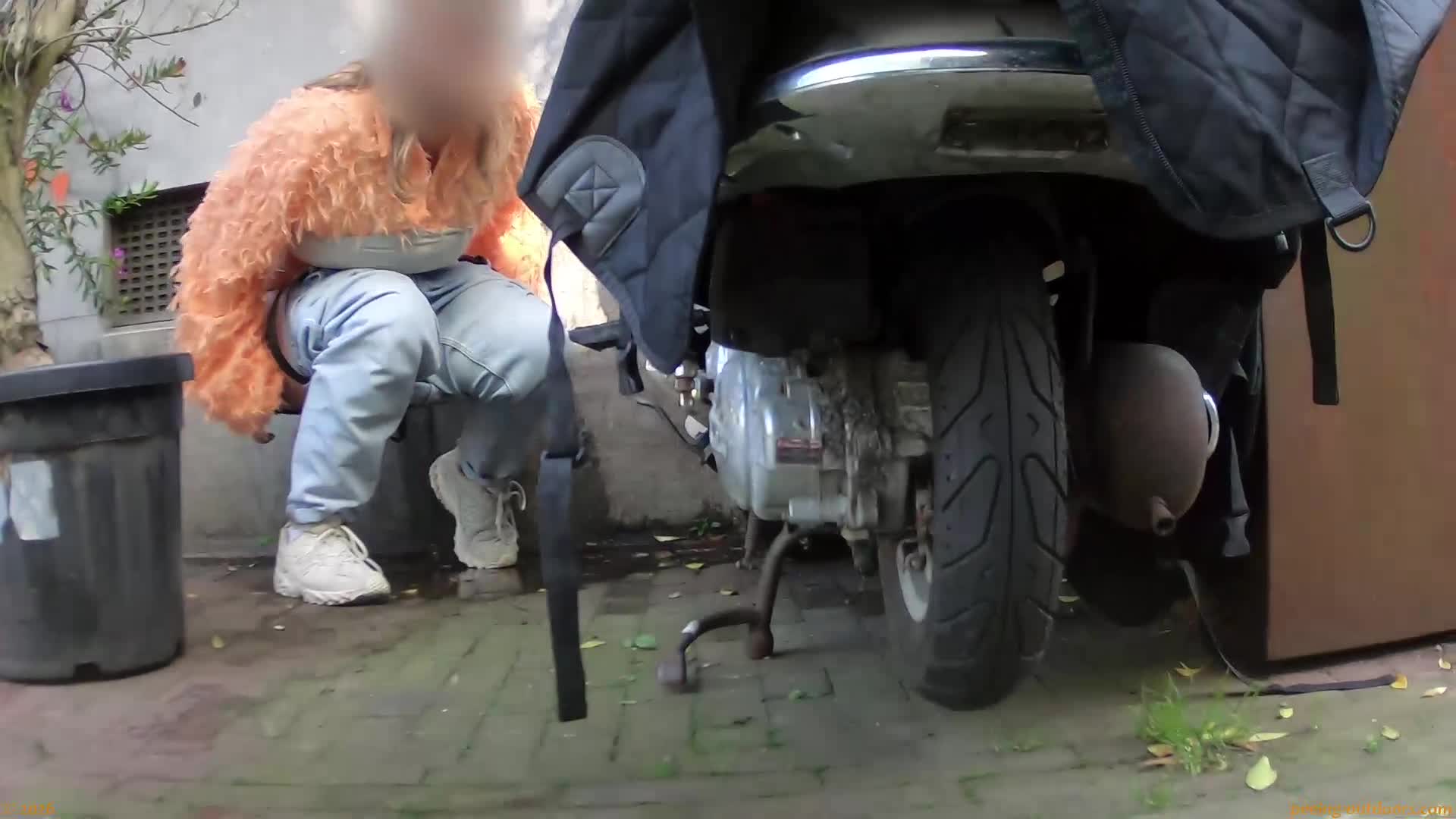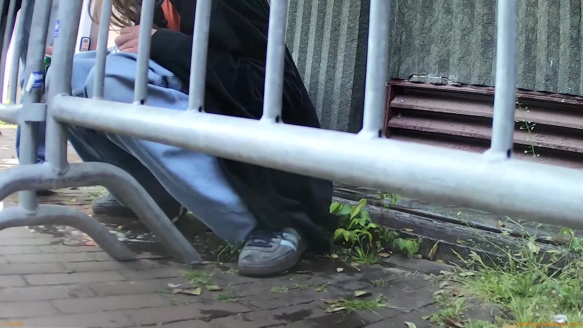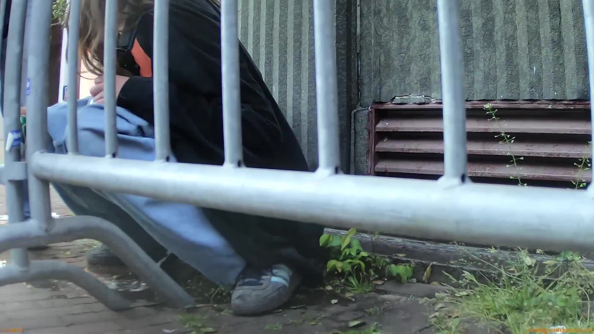 • Pretty brunette hesitates at first, but she’s so desperate that, in the end, she doesn’t care who sees her pissing in public.
