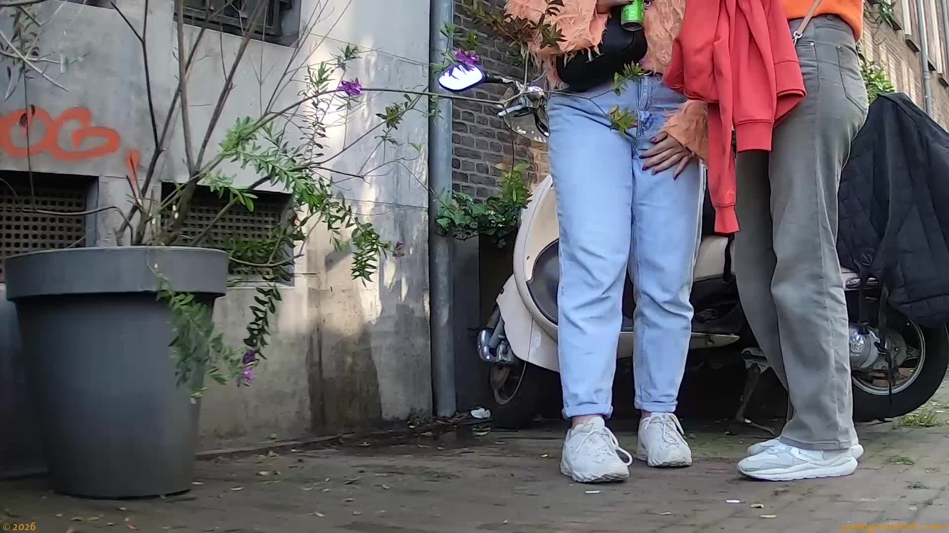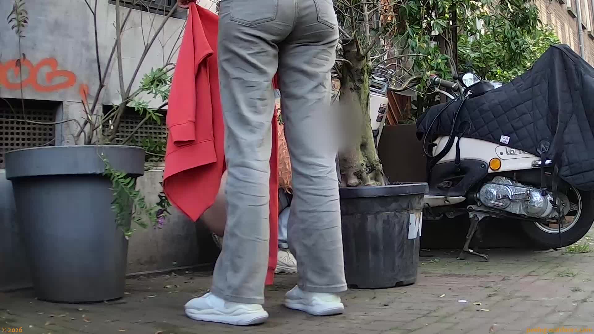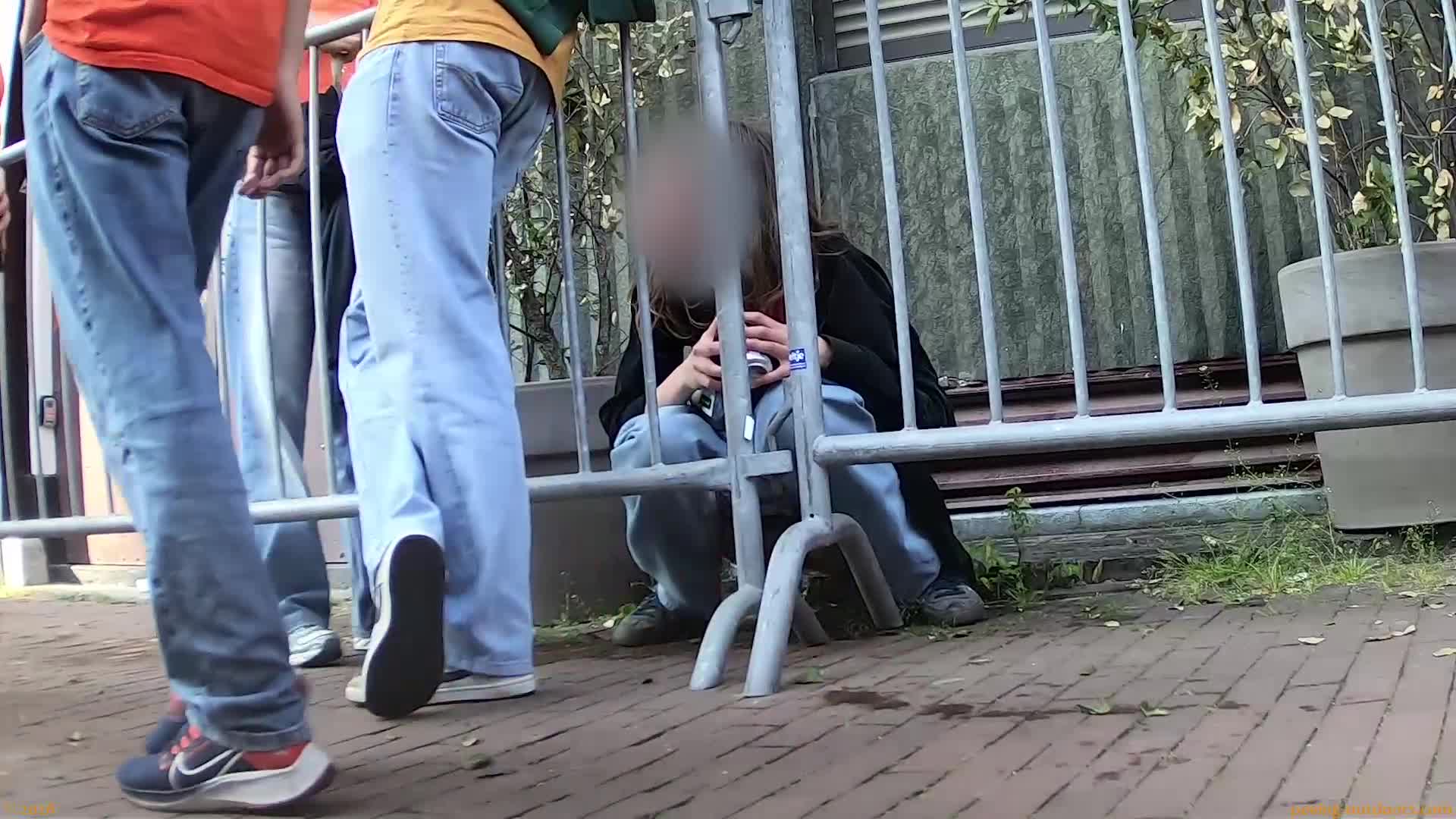 • Pretty brunette hesitates at first, but she’s so desperate that, in the end, she doesn’t care who sees her pissing in public.