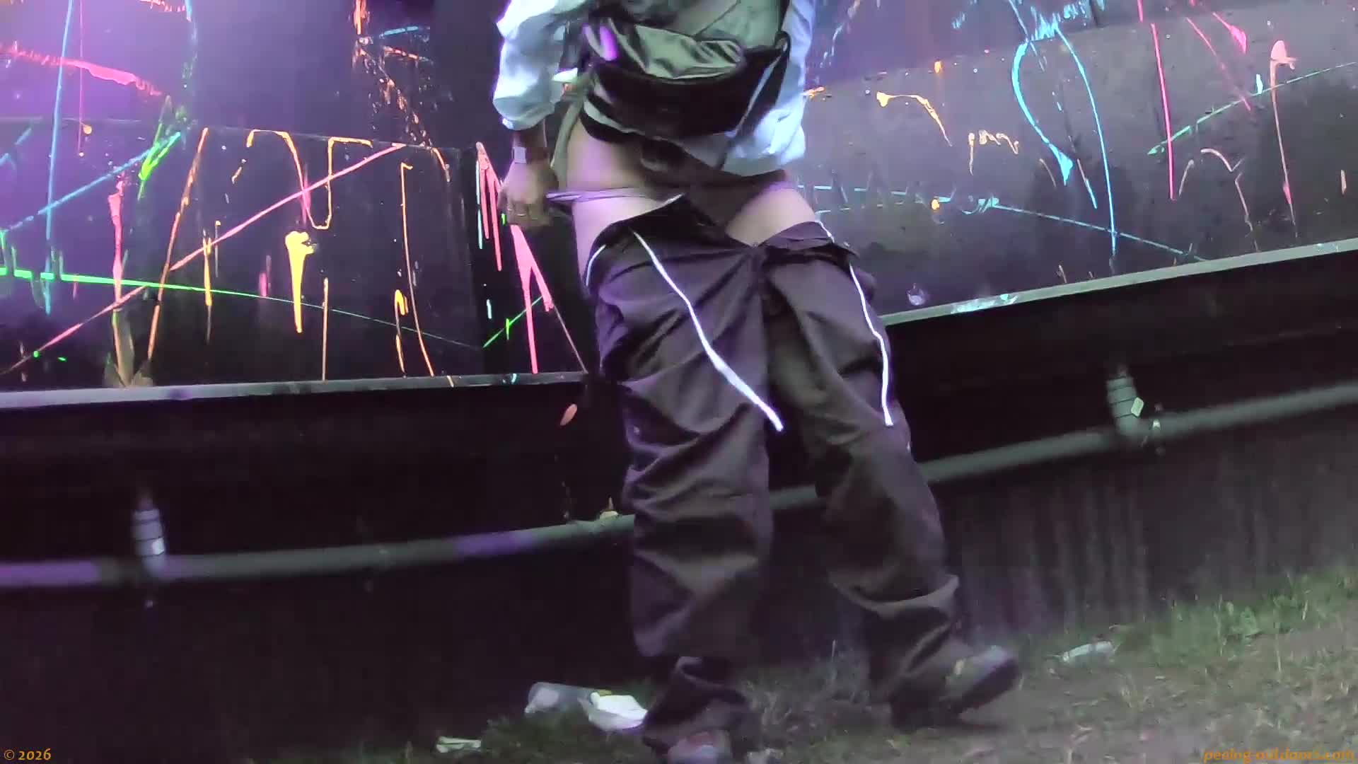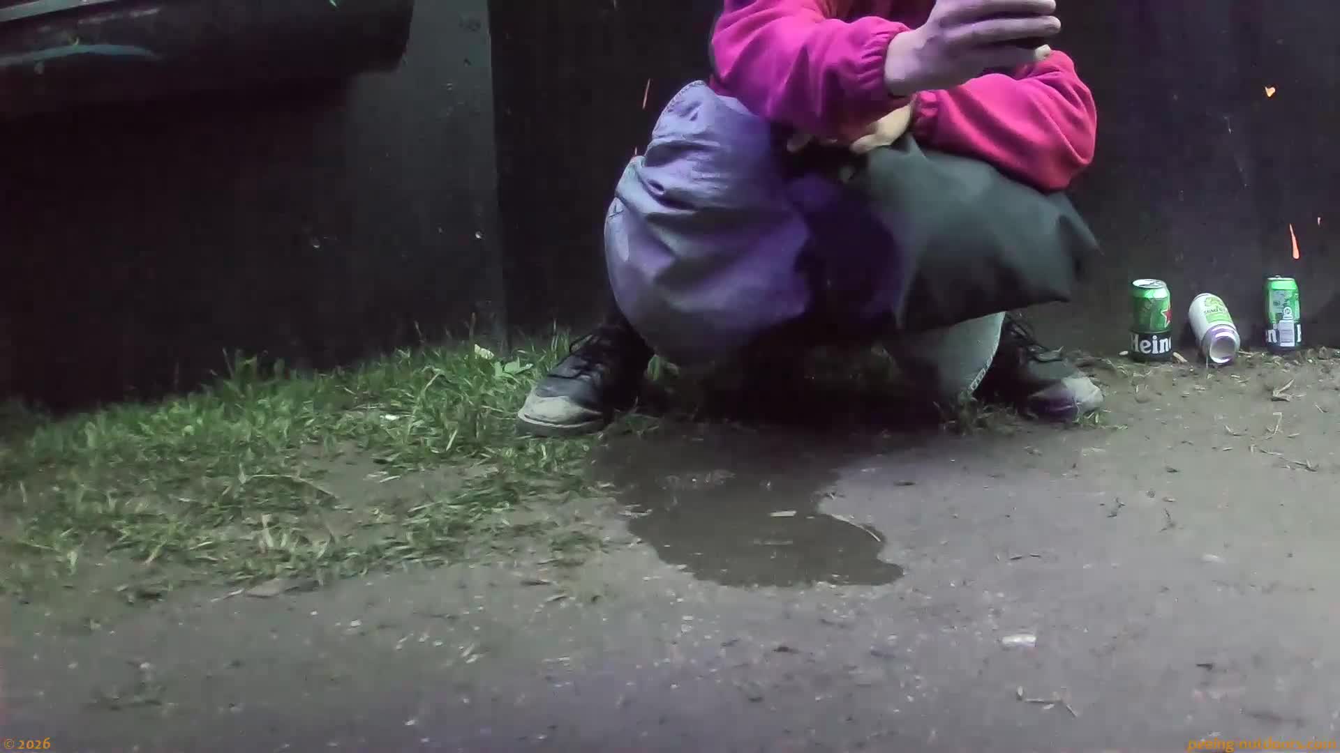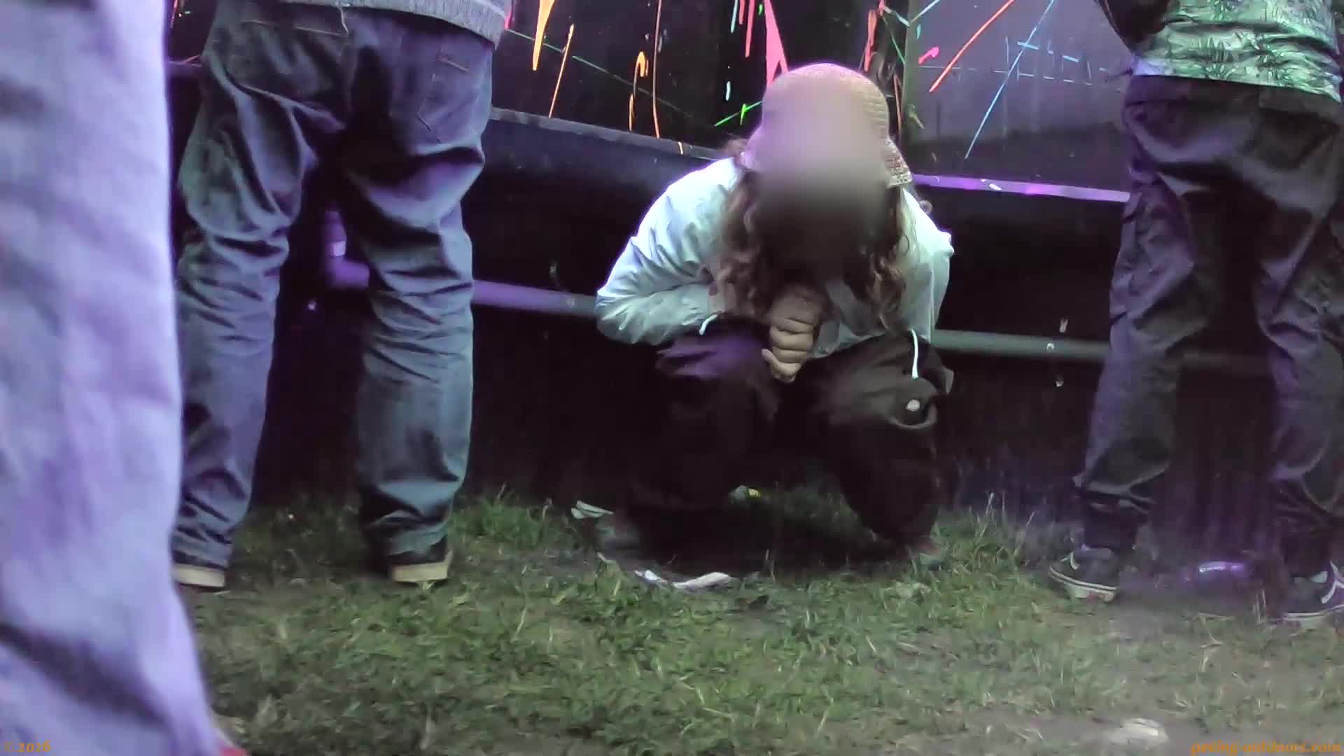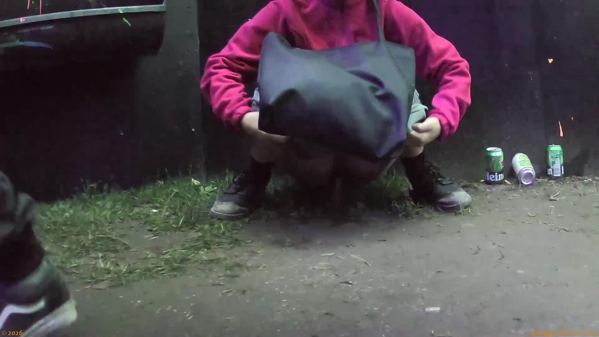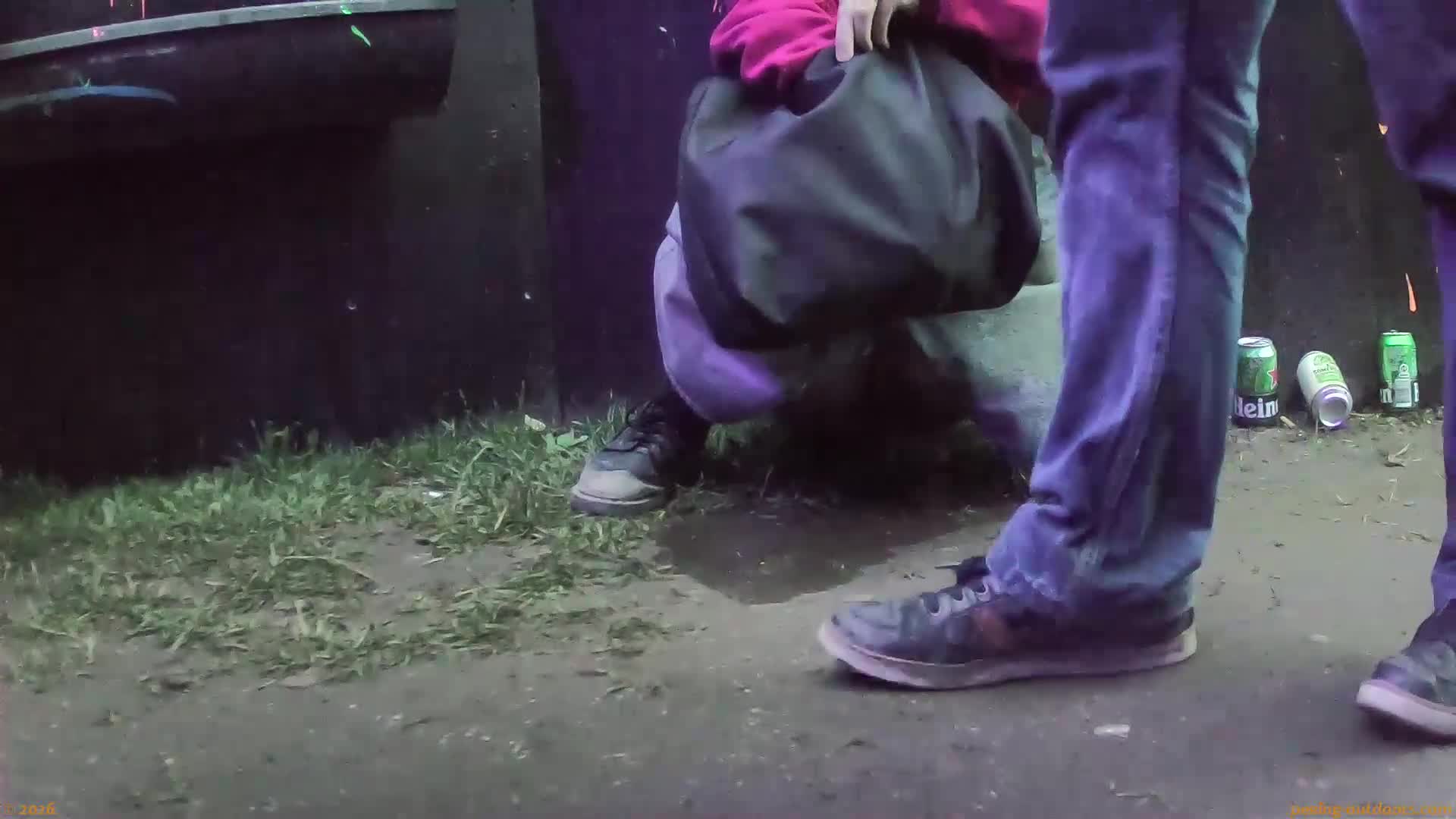 - Two ladies relieve themselves in a secluded corner, squatting side by side.