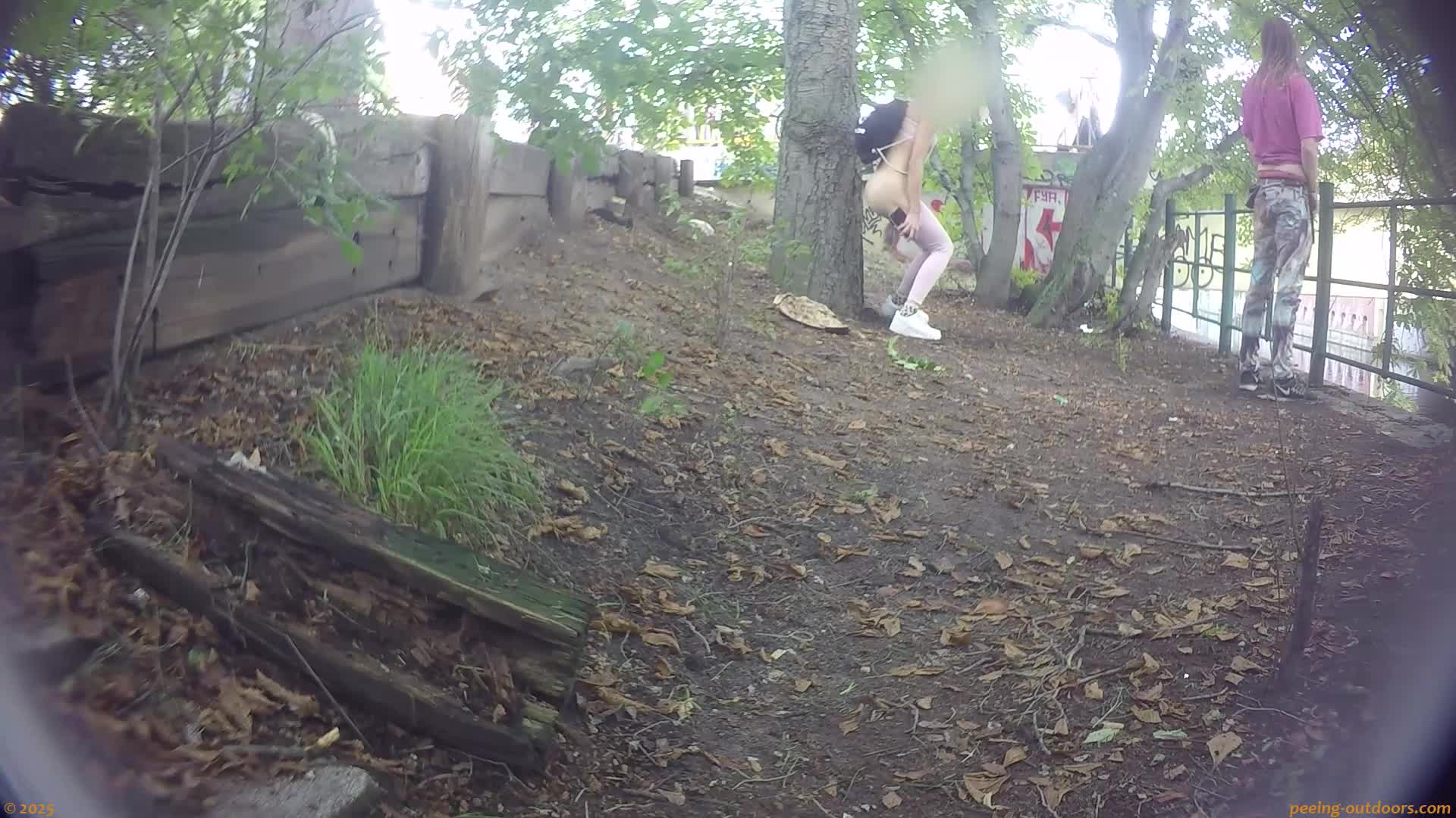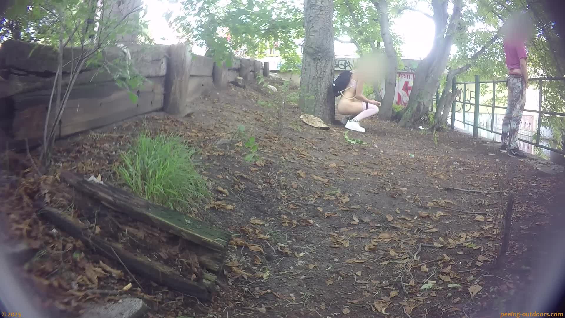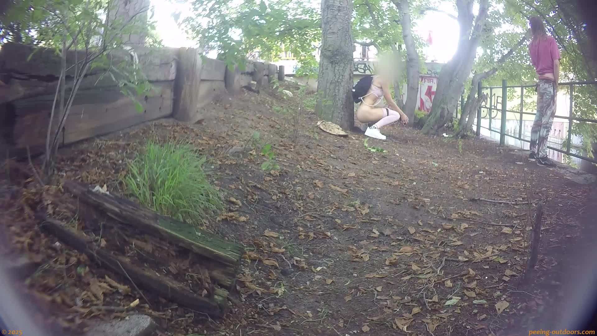 - Chubby girl relieves herself in a secluded corner, leaving a huge puddle on the pavement.