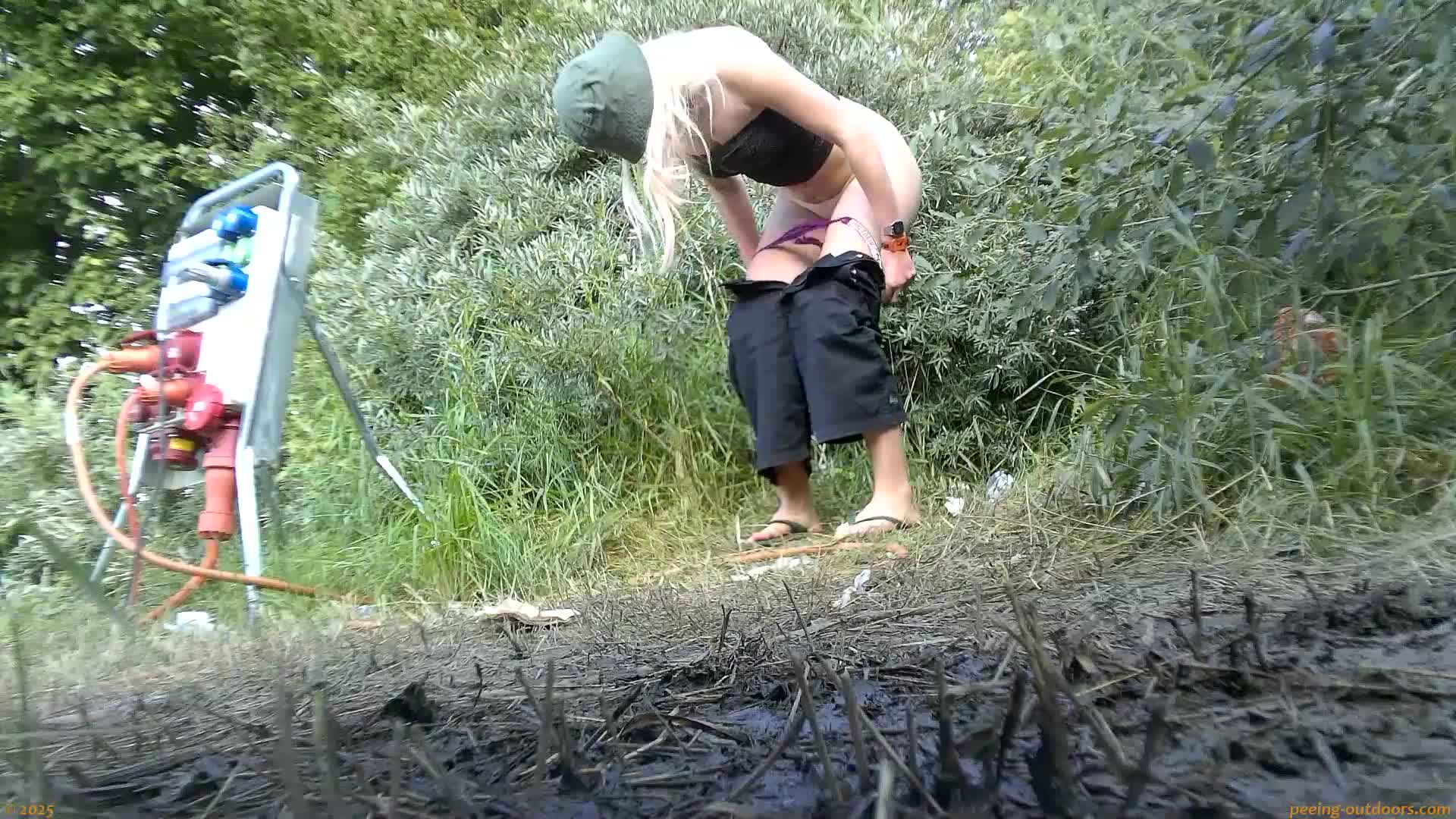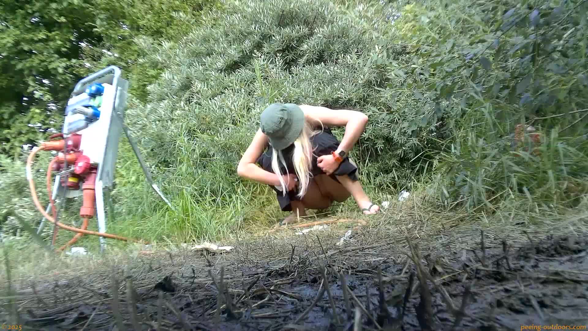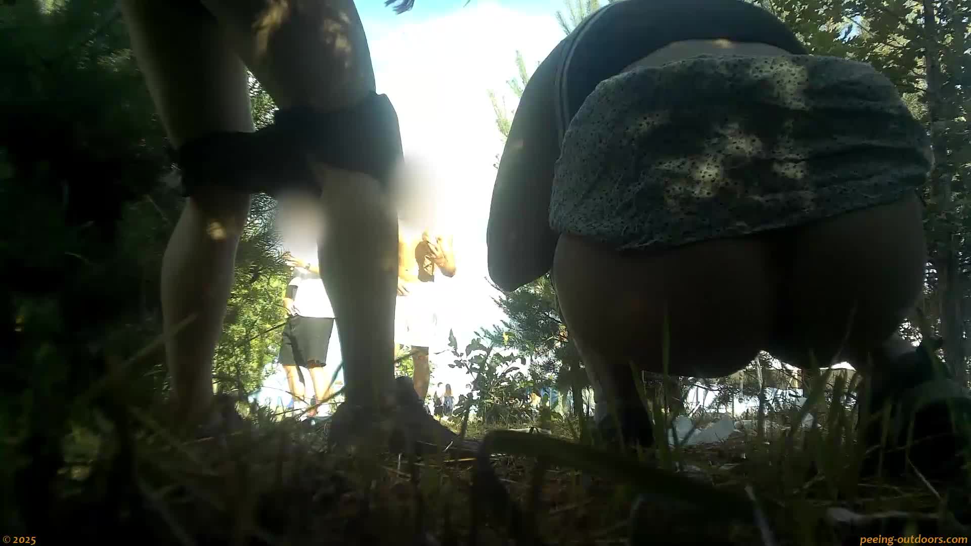 - Two ladies are visiting the unisex bushes for a quick pee break.
