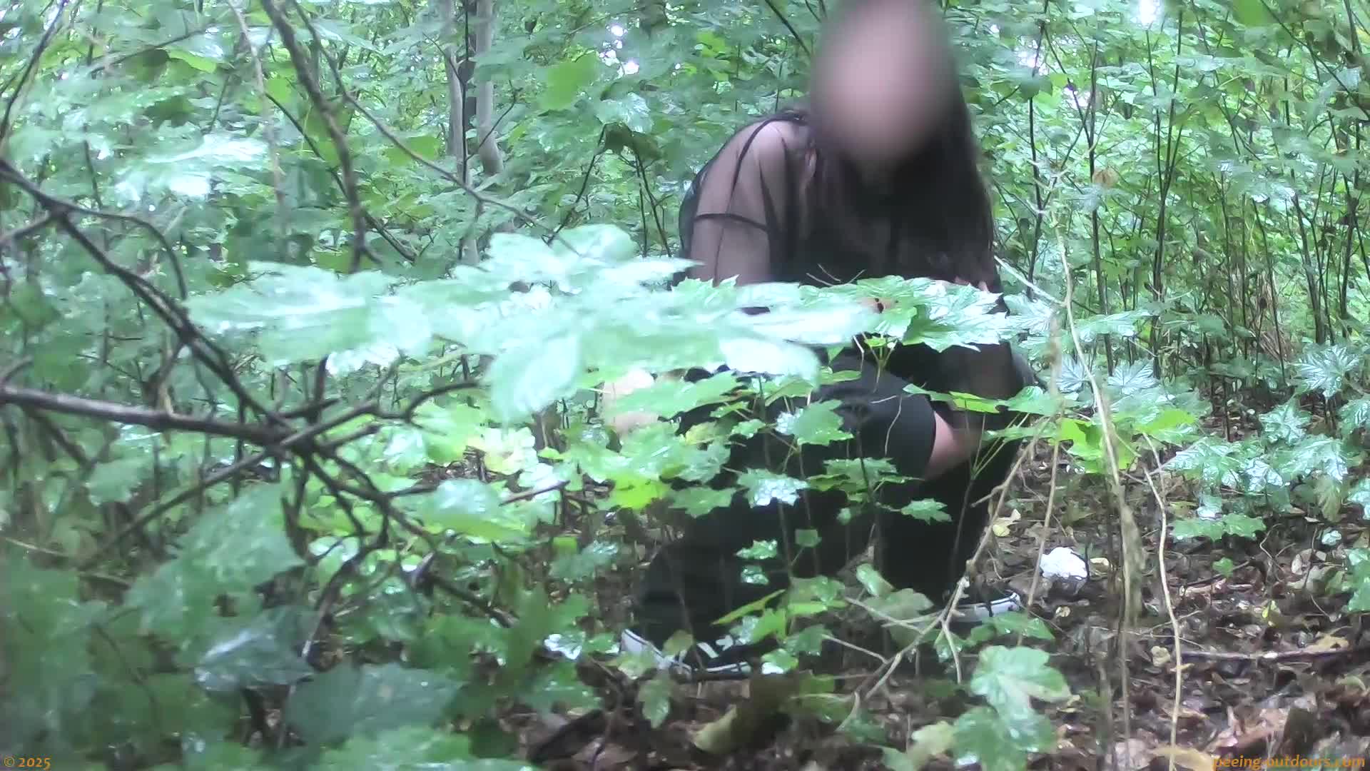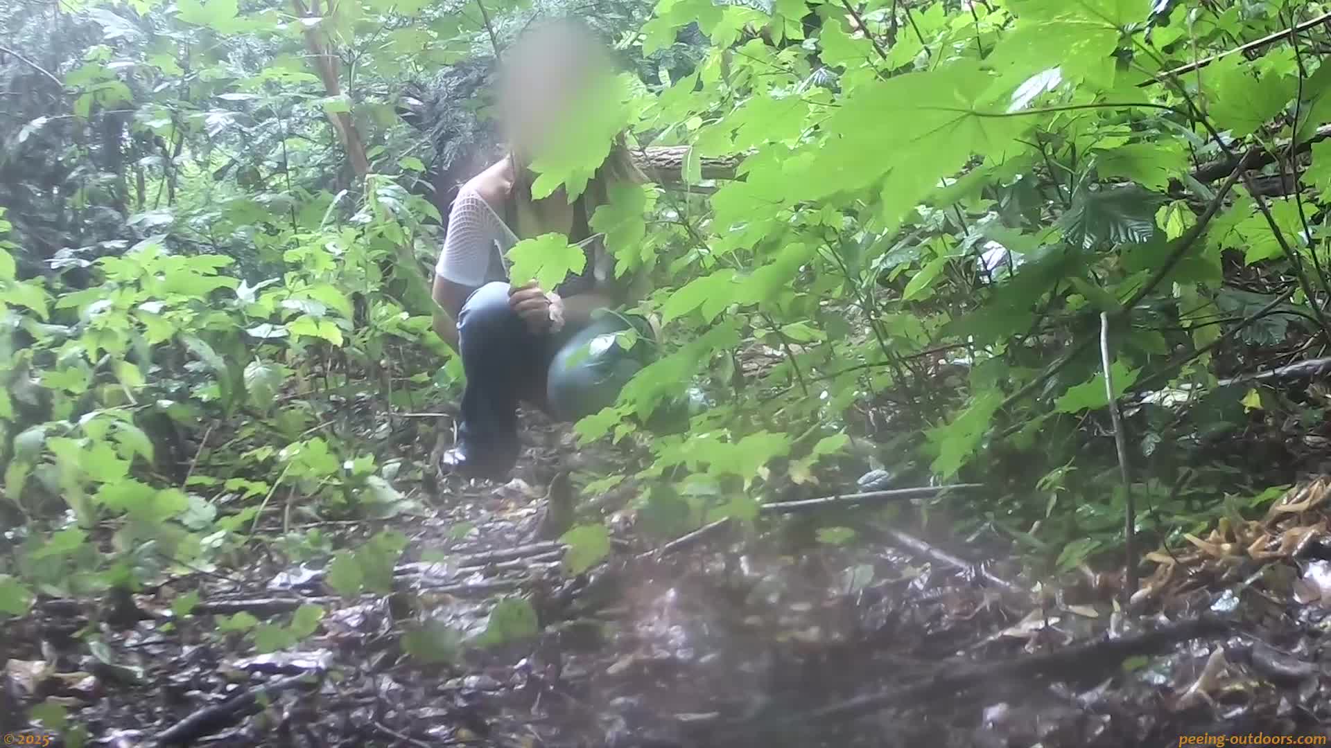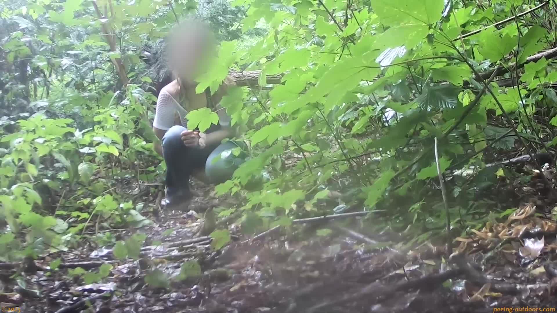 - Chubby girl takes a leak in the forest.