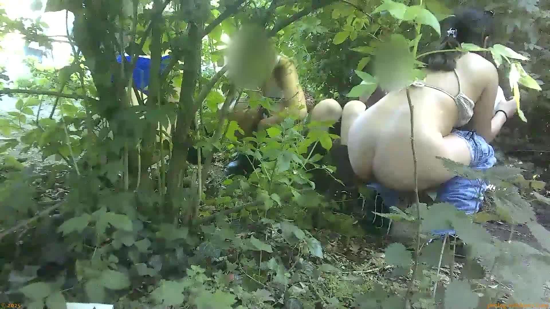 - Several chicks are caught pissing in the bushes.