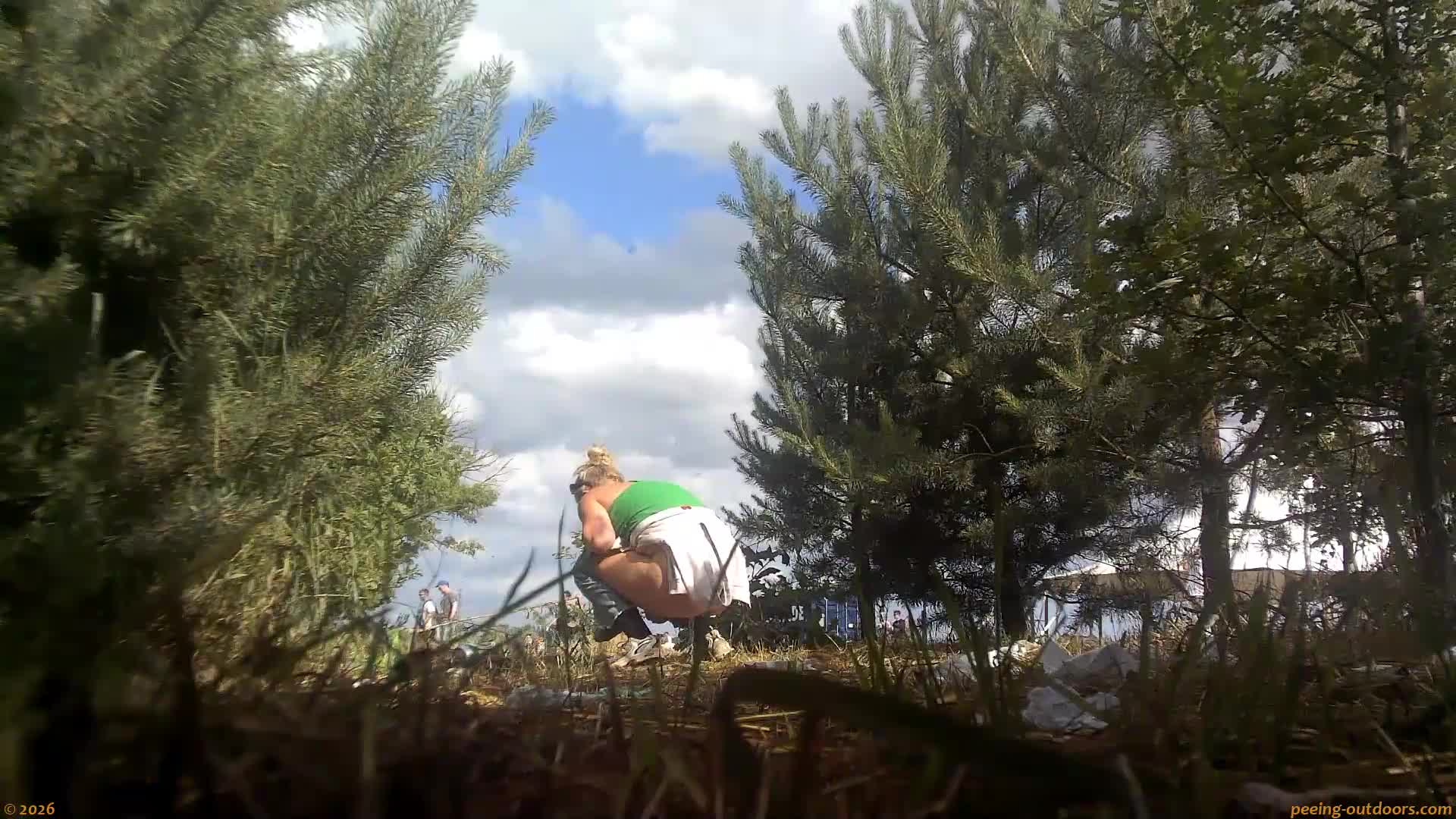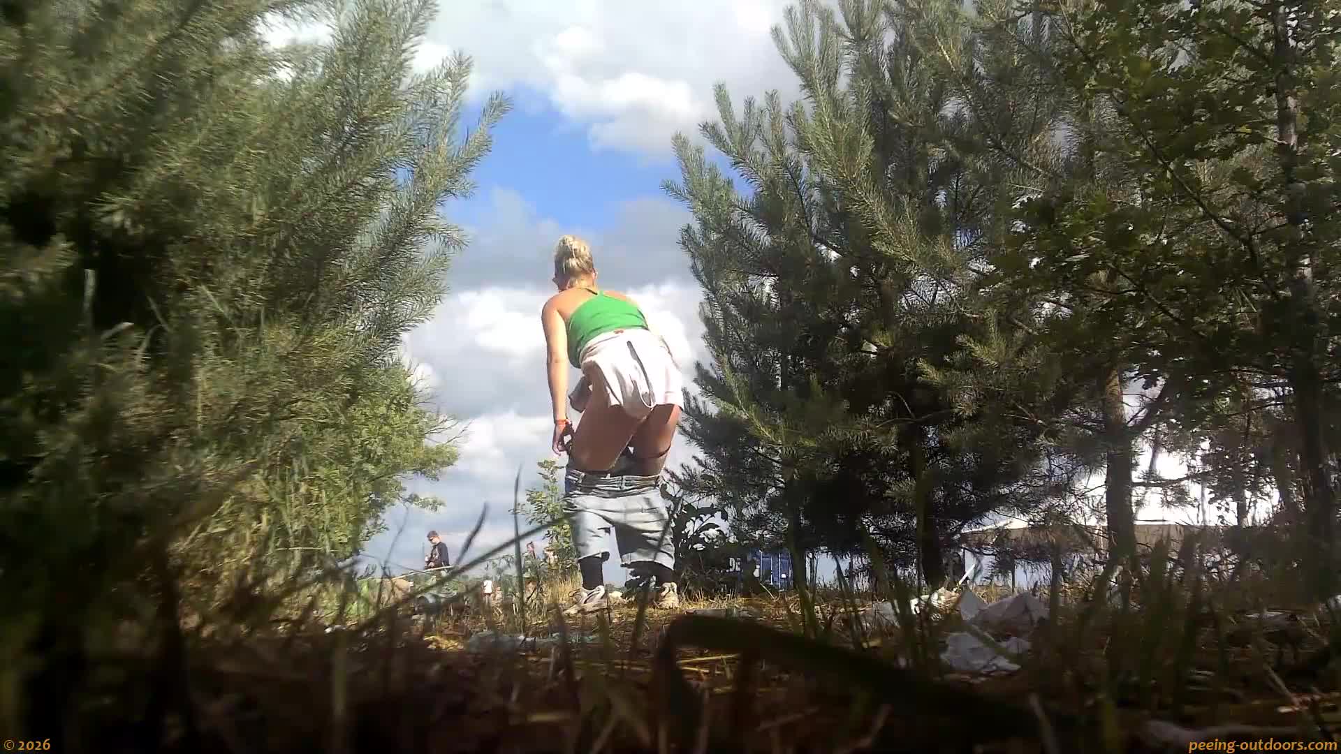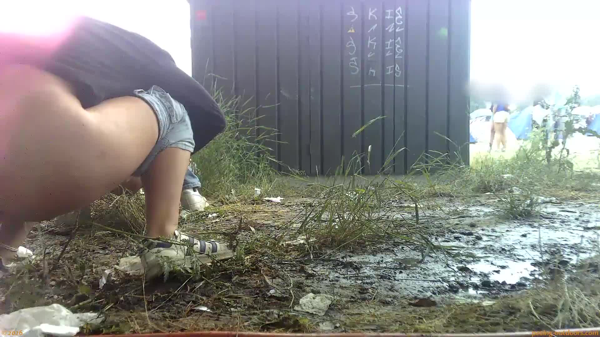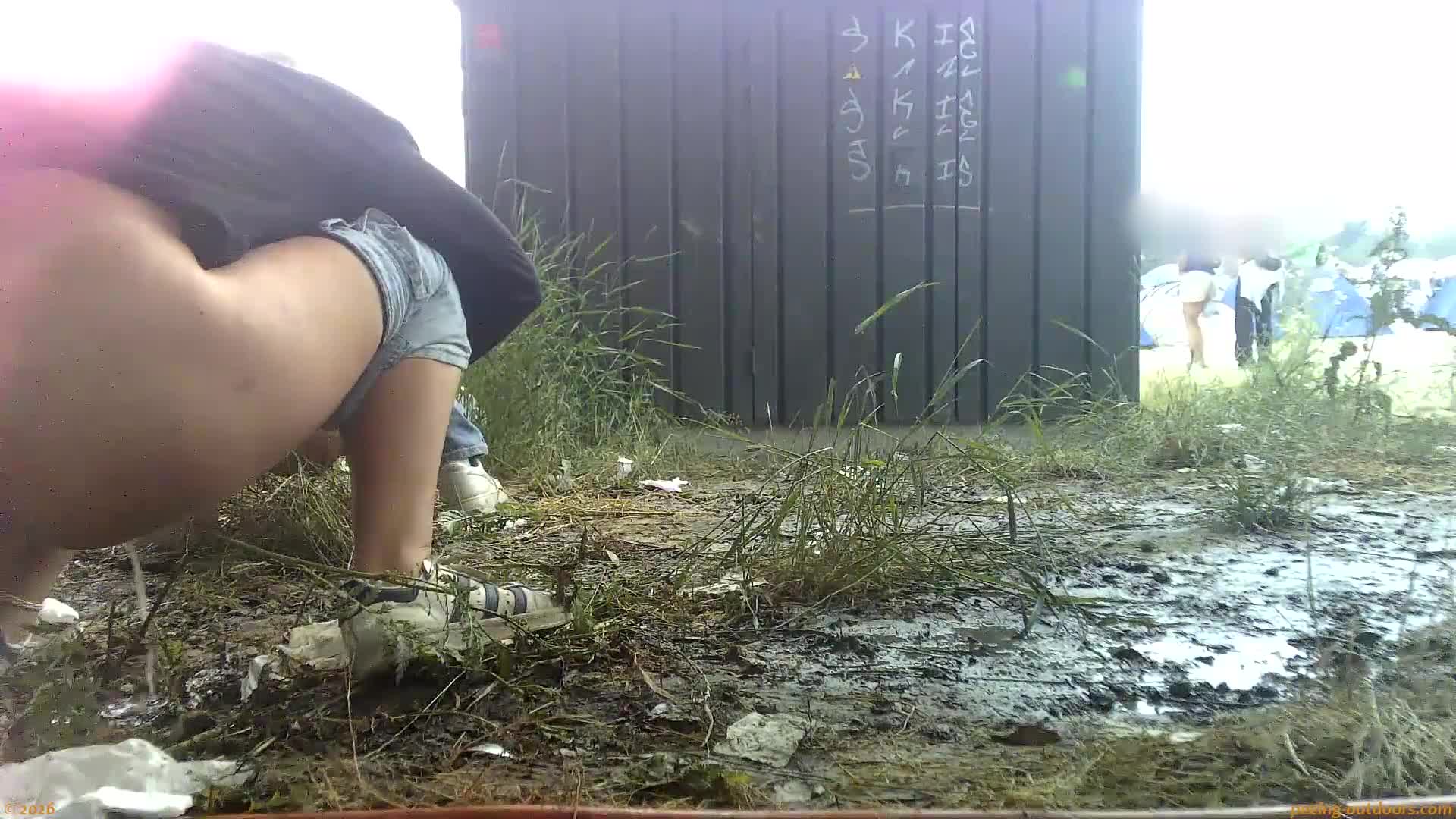 • Two girls are filmed from the rear pissing behind a transformer box.