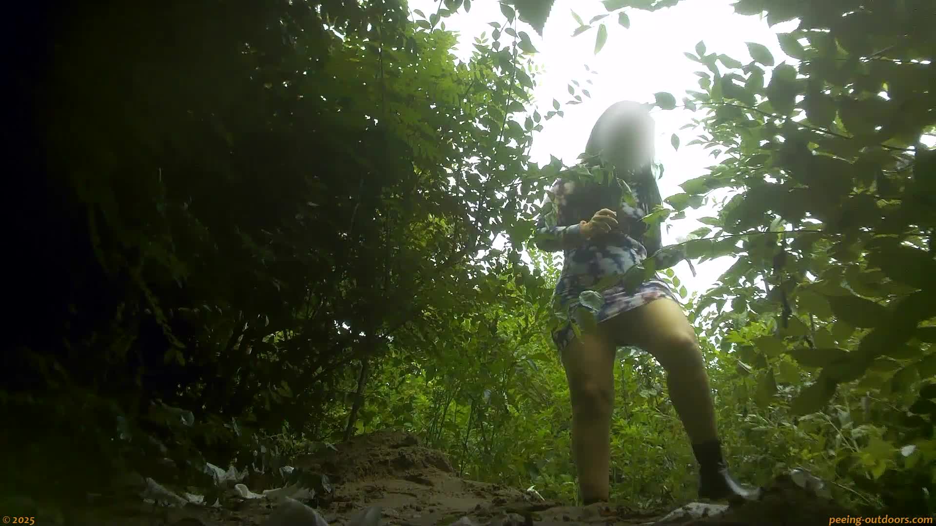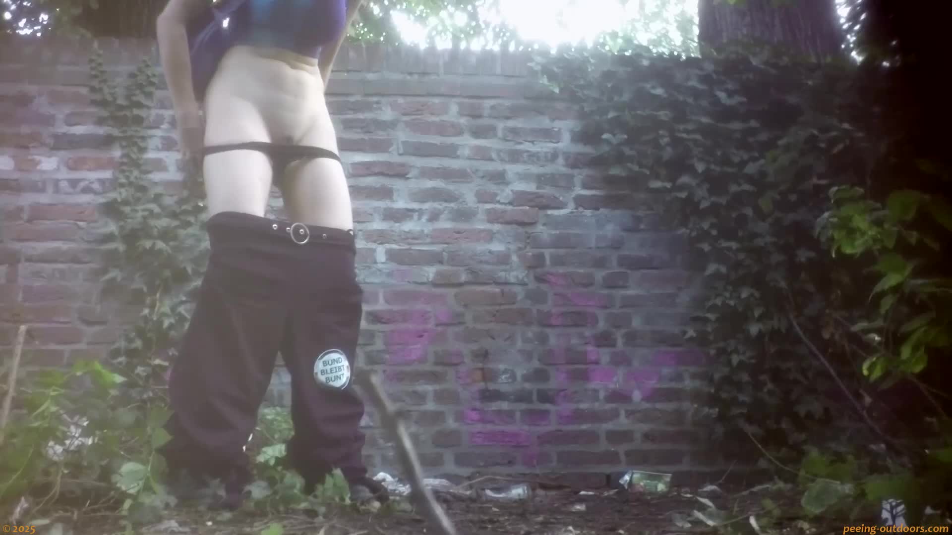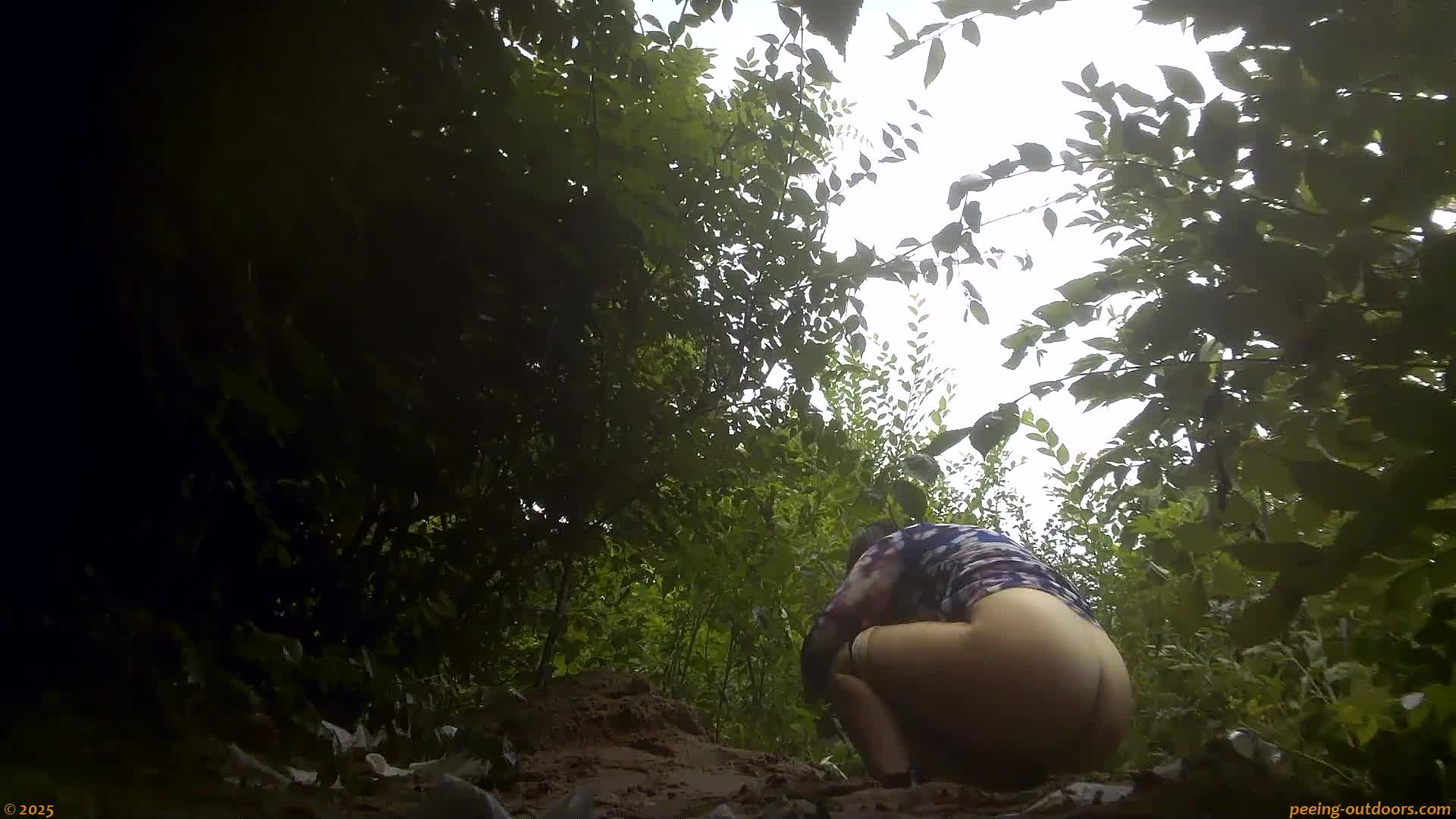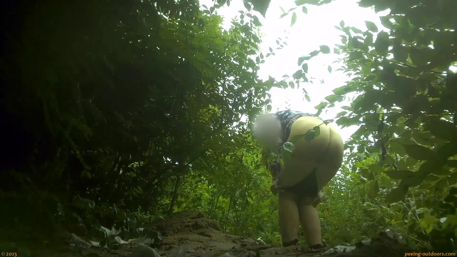 • Pretty blonde is filmed from behind, exposing her bum in the open.
