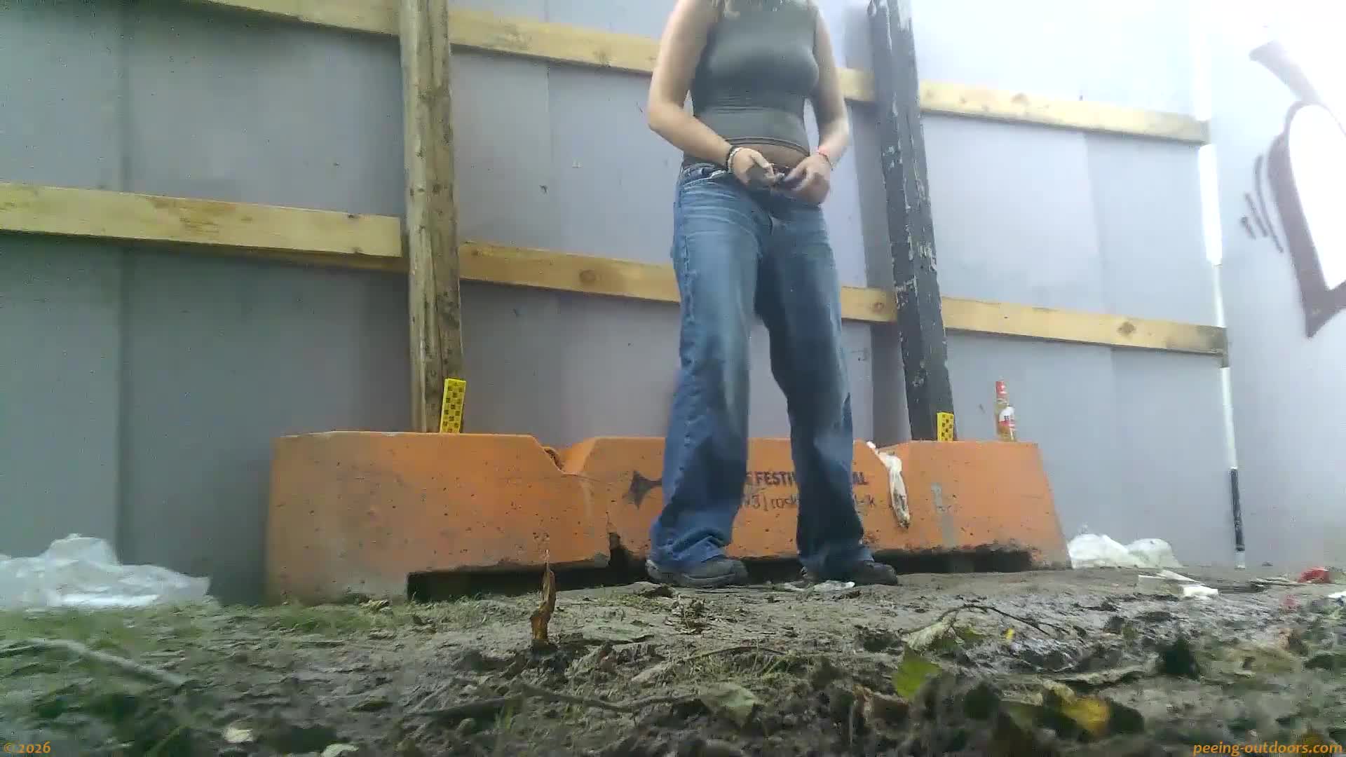 - Sweet blonde squats right in front of our camera, in this case, unfortunately, even a little too close.