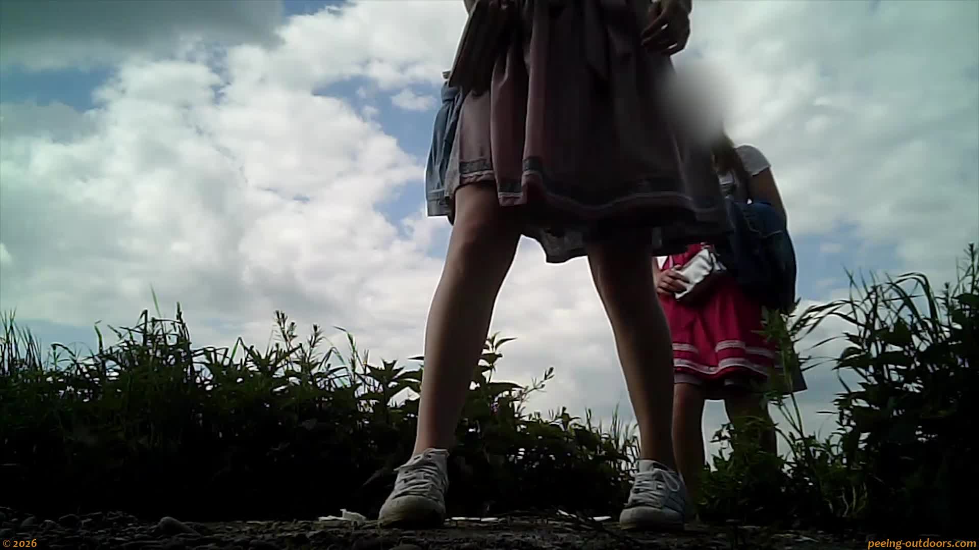 - Sweetie lifts her dress to piss right in front of our camera.